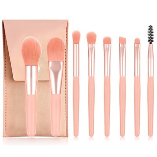 심플라인 휴대용 미니 메이크업 브러쉬 8종 + 파우치 세트, 핑크, 1세트